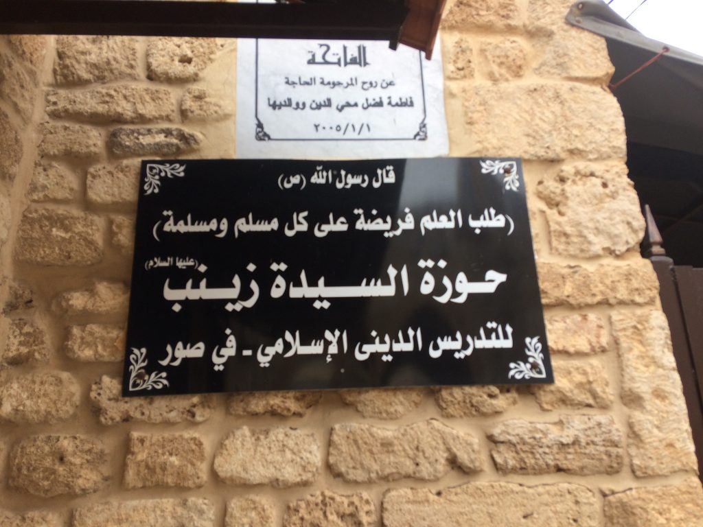 En una estancia en Líbano y de visita en Tiro, lo vi en esta hawza (institución shii) y con el final ala kull muslima: «para toda musulmana». Y me hice la foto.
